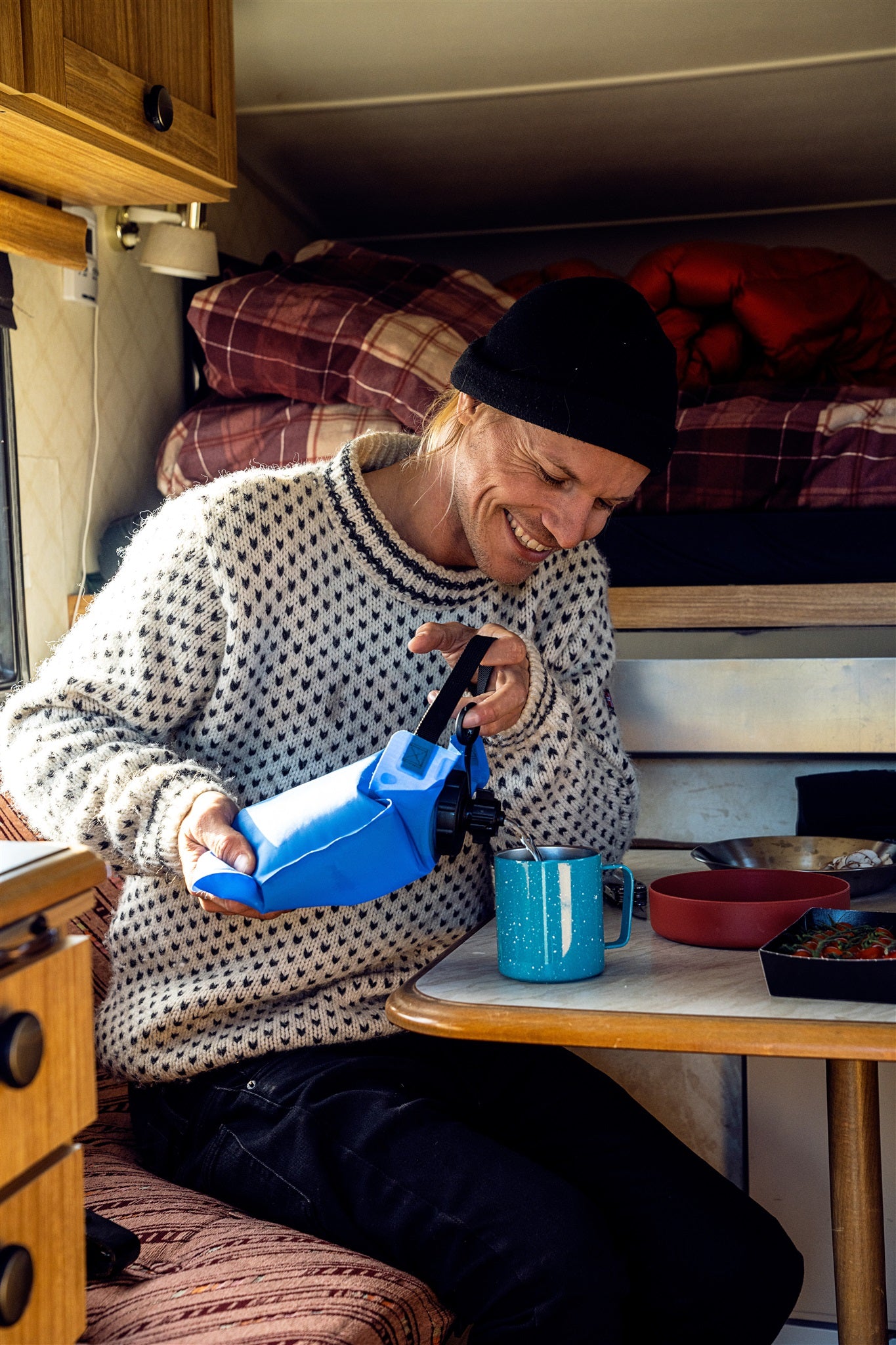 The Shower Valve can be put onto all ORTLIEB water containers. Remove the dust cap, put on the shower valve, and open the tap.